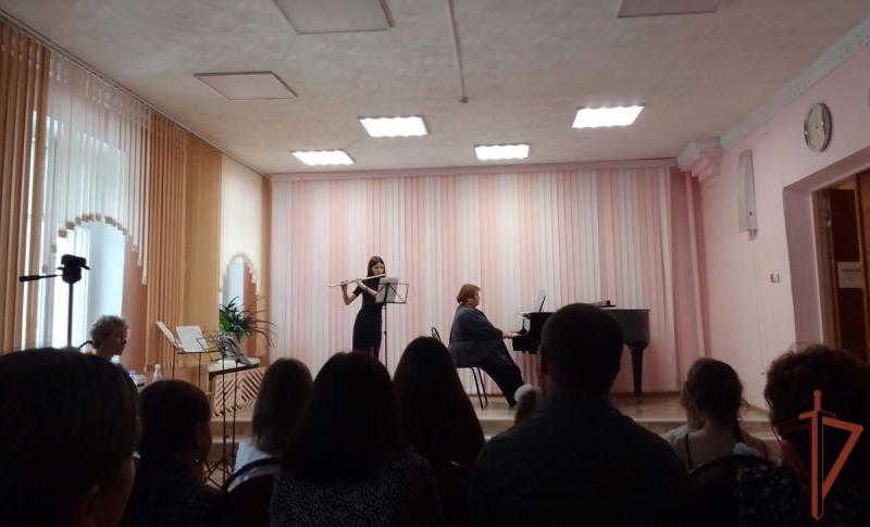 Офицер ведомства кандидат педагогических наук поделился с начинающими исполнителями личным опытом освоения такого непростого музыкального инструмента как флейта. Продемонстрировал некоторые приемы игры и открыл свои секреты мастерства. А завершилось занятие концертом, в котором восемь флейтисток - участниц ансамбля «Волшебная флейта» выступили перед родителями и преподавателями школы.