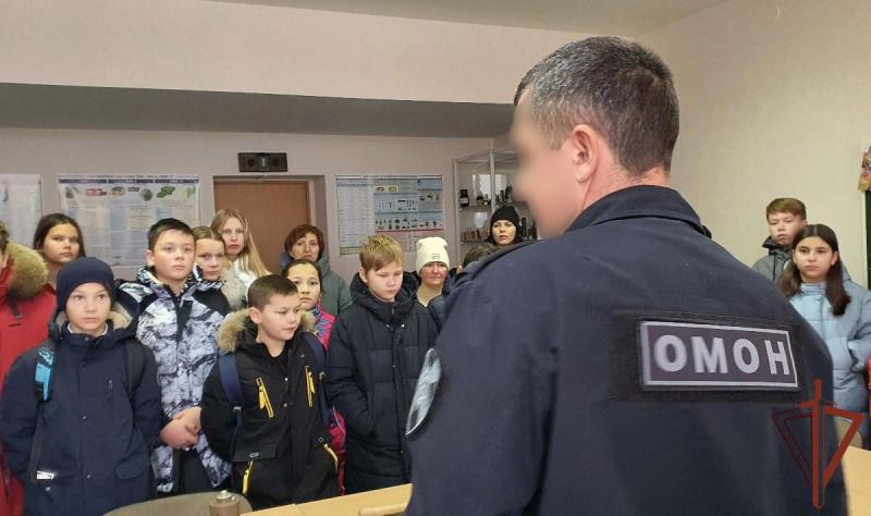 В рамках мероприятия росгвардейцы показали ребятам фильм о войсках, рассказали о задачах, выполняемых спецназом. А также напомнили о мерах безопасности и алгоритме действий при обнаружении бесхозных сумок и предметов, оставленных в общественных местах и в транспорте. Сотрудники вручили юным участникам буклеты с телефонами экстренных служб и памятками по безопасному поведению.