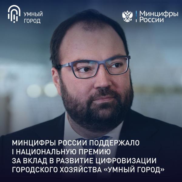 Минцифры России поддержало I Национальную премию за вклад в развитие цифровизации городского хозяйства «Умный город»